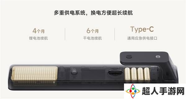 续航方面,小米智能门锁2猫眼版采用了双供电系统,由干电池和锂电池共同组成。其中,锂电池容量高达5000mAh,可支持猫眼功能长达4个月的续航时间。而4节干电池则能支持6个月的指纹、密码基础开锁续航。在双系统共同作用下,总续航时间可达10个月。即使电量耗尽,用户也可以通过Type-C外接充电宝为门锁应急供电,完成临时开锁操作。