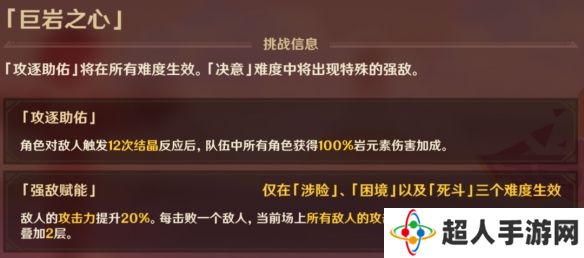 buff效果可以大幅提高伤害,希诺宁可以快速让利用机制瘫痪boss,对岩队来说是比较好打的,其余的强对单队伍没有buff稍微会有些吃力,需要高练度,这关如果输出差一些的话可以利用机制,让boss频繁进入蓄力状态并依赖打断扣血的机制来补伤害