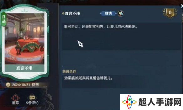 6、对话结束,完成锦囊遗香,即可获得说英雄卡片:直言不讳、香囊密探来也。