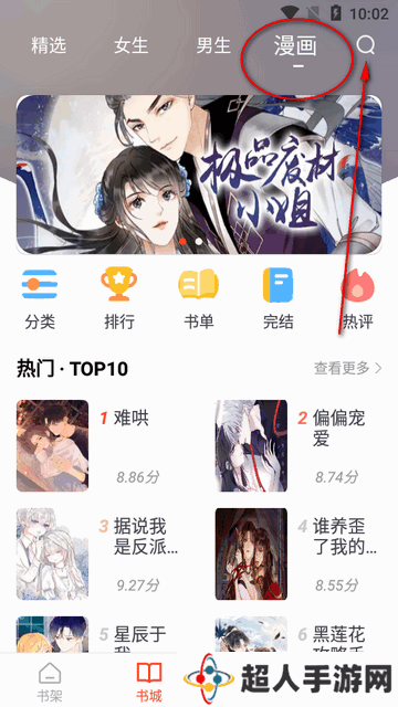 5、在书城页面最顶端可以选择漫画搜索想看的内容。