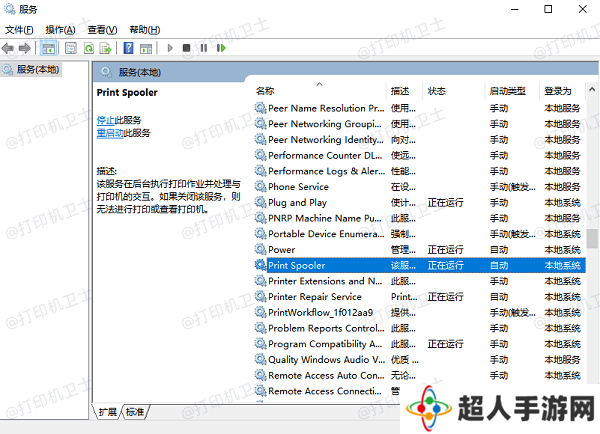 在服务列表中找到Print Spooler,确保其状态为“正在运行”。