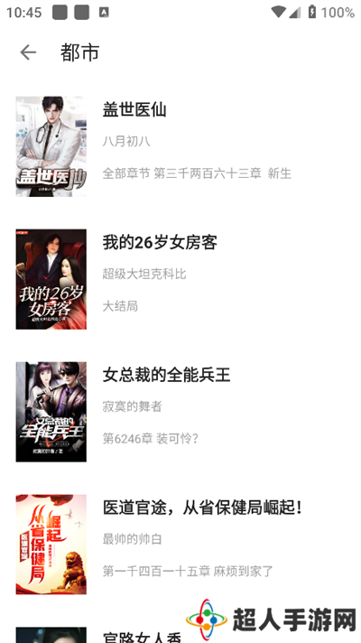 3、选择喜欢的小说类型点开,比如小编选择的“都市”,就会为你呈现该类别的小说。