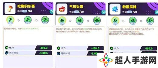 气势头带:体力下降至25%以下时,3秒内每秒恢复6%的体力,触发后需等待15秒才能再次触发。