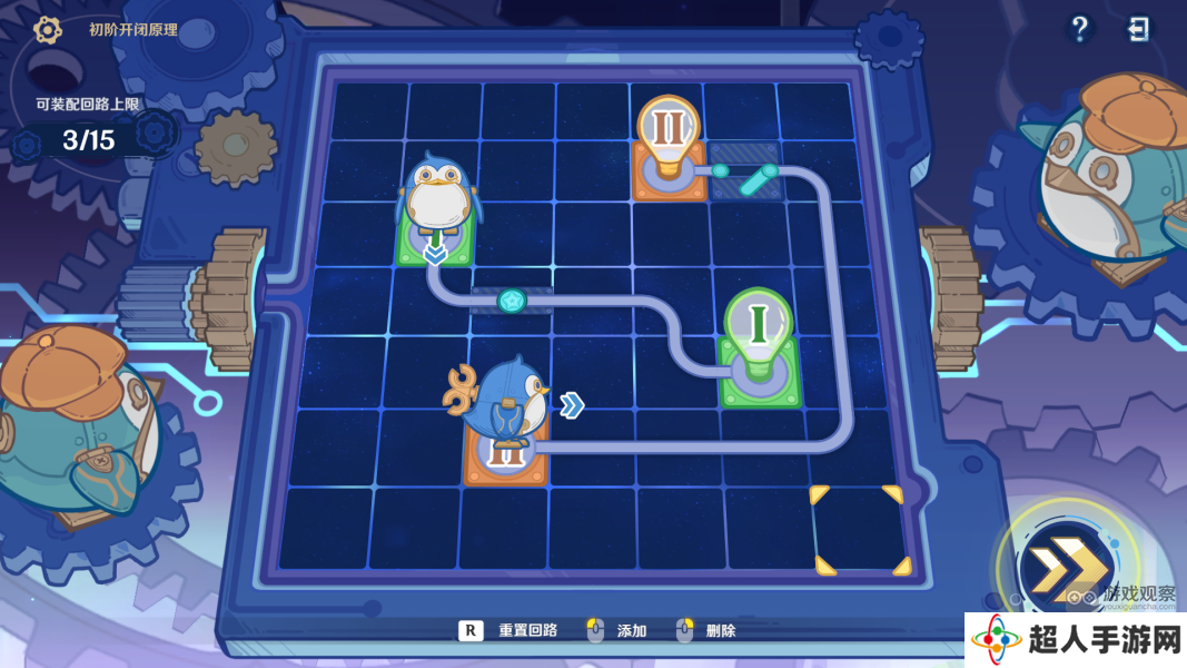机关2:多重回路,两个不同编号的企鹅要到达其对应编号的终点。