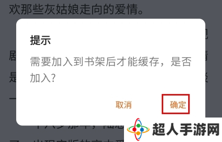 3、需要加入书架之后才可以缓存下载,点击确定按钮。