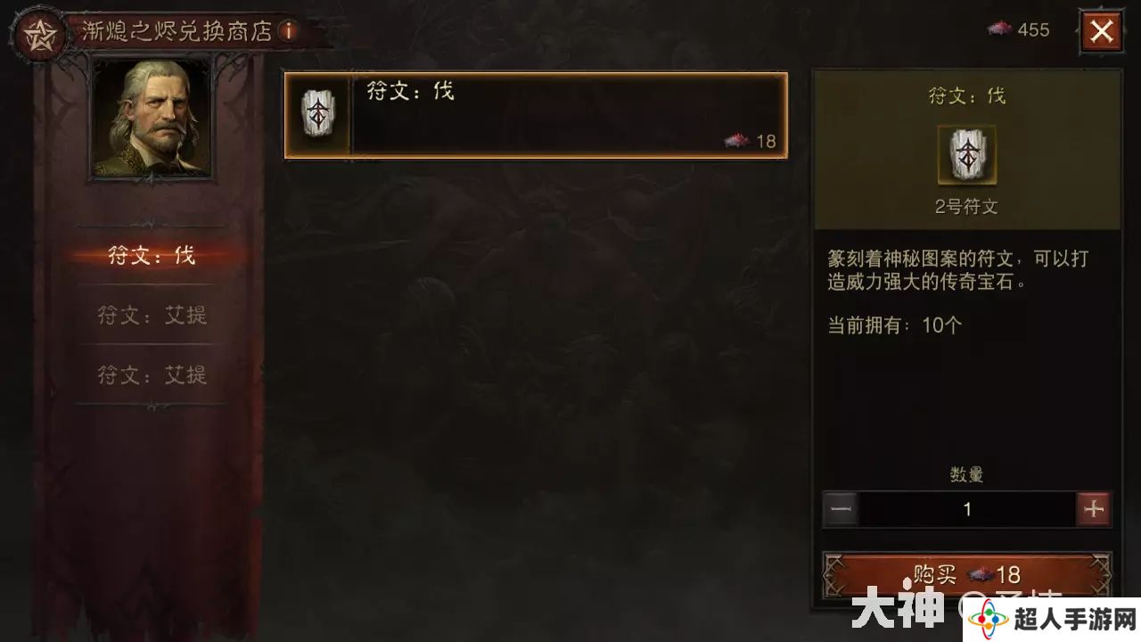 渐熄之烬的主要用途就是可以在主城的渐熄之烬NPC处兑换符文:
