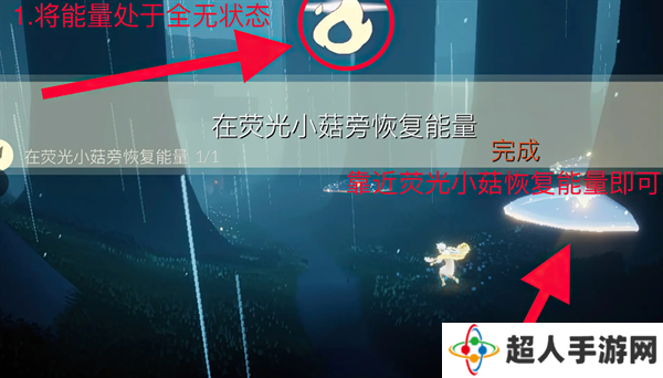 任务二:耗尽斗篷能量,接近荧光小菇恢复即可;