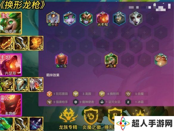2、羁绊组成:6换形 3龙族 2枪手 2炎魔