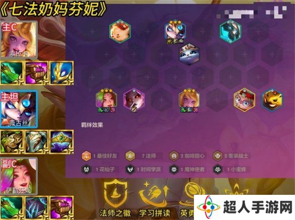 2、羁绊组成:7法师 2咖啡甜心 2重装战士 1最佳好友