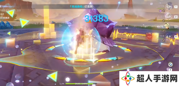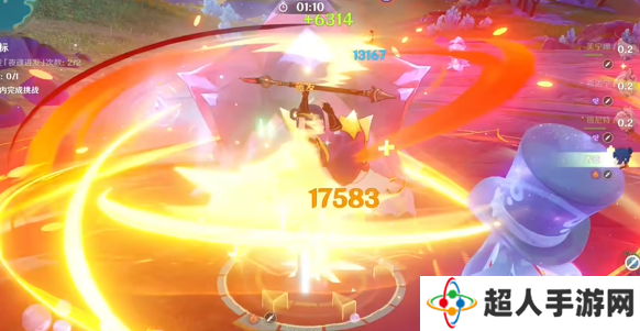 3、使用班尼特释放大招,香菱吃班尼特攻击力加成后开启大招,期间注意给副c进行充能,同时躲避敌人的下落伤害。