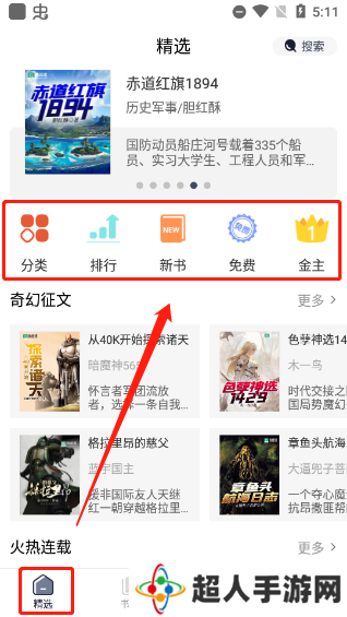 指尖微小说使用教程1、进入app点击"精选"我们可在此快捷的寻找官方所推荐的优质图书。