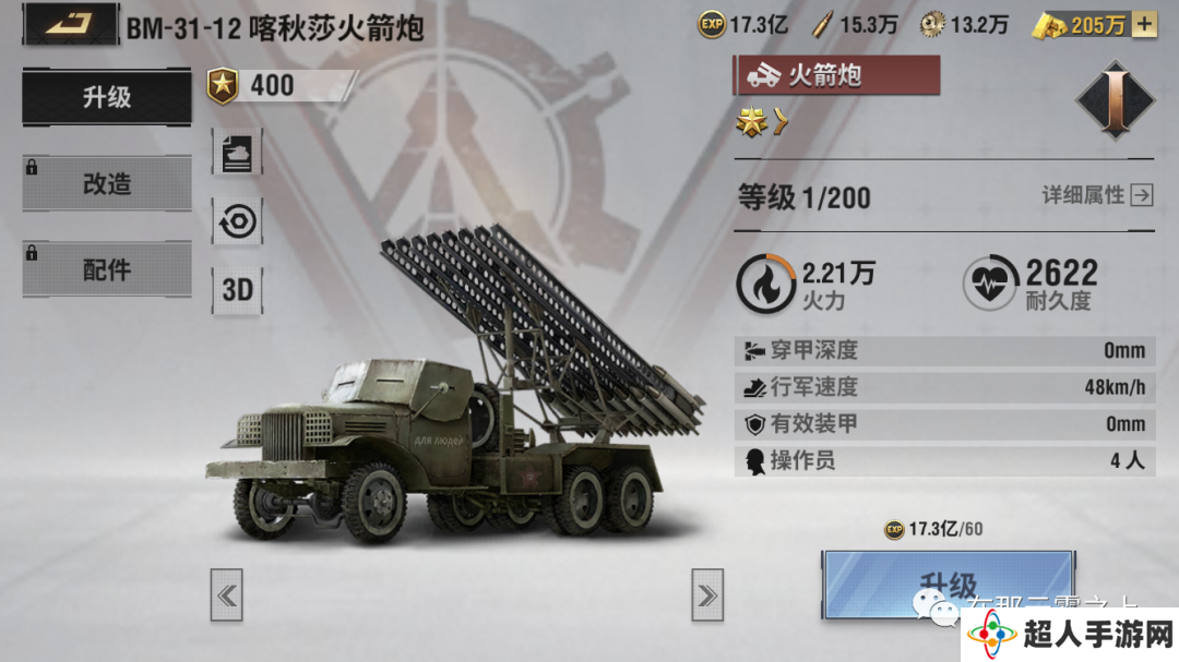 火箭车比较特别,在火炮科技升级满的情况下,可以做到第一发的装填时间只要2秒,这肯定对于触发护国的觉醒技能很有帮助。玩家可以通过hit&run的方式来保证每次都只要2秒的间隔。