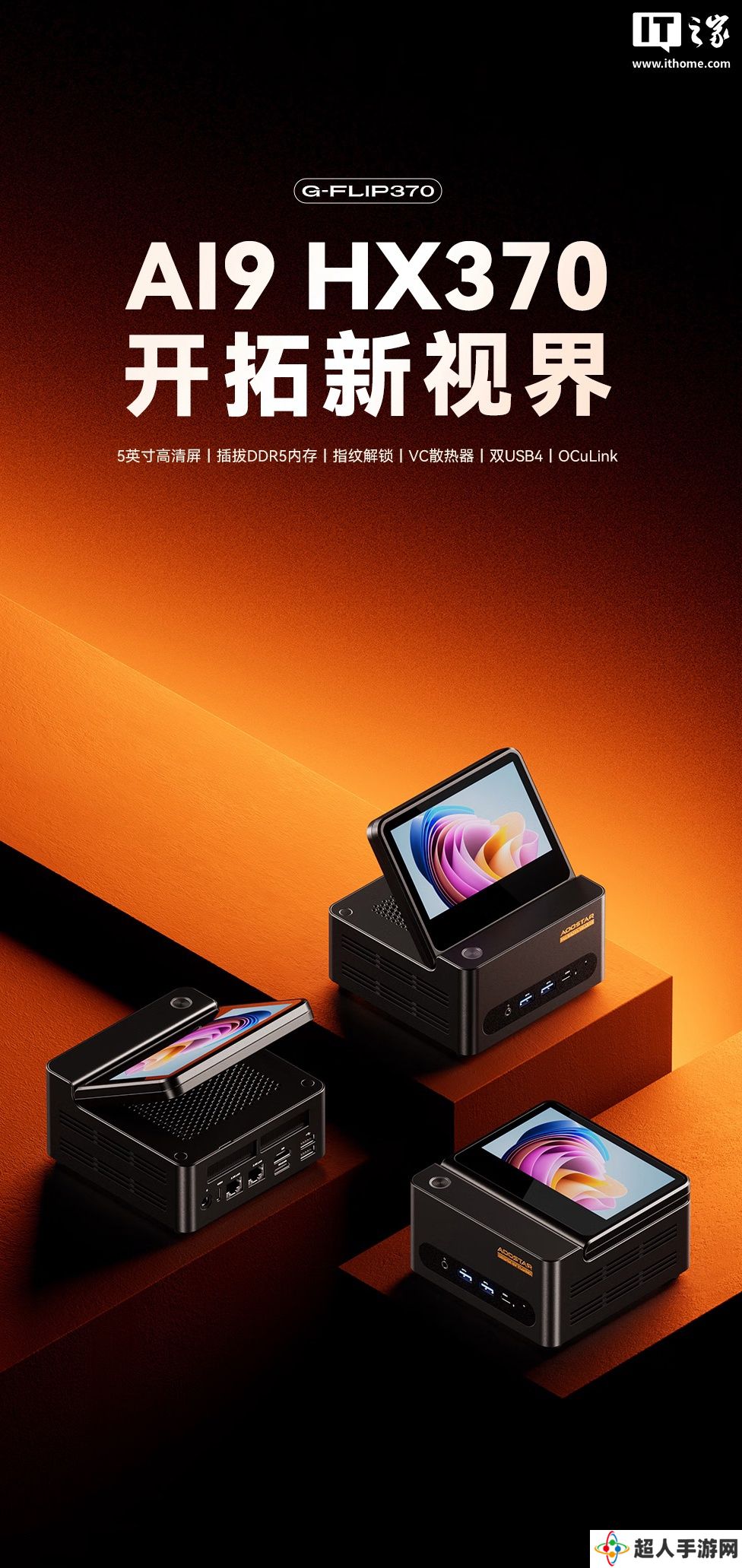 天钡 G-FLIP 370 迷你主机首销:锐龙 AI 9 HX 370 + 5.5 英寸可折叠副屏,4299 元起