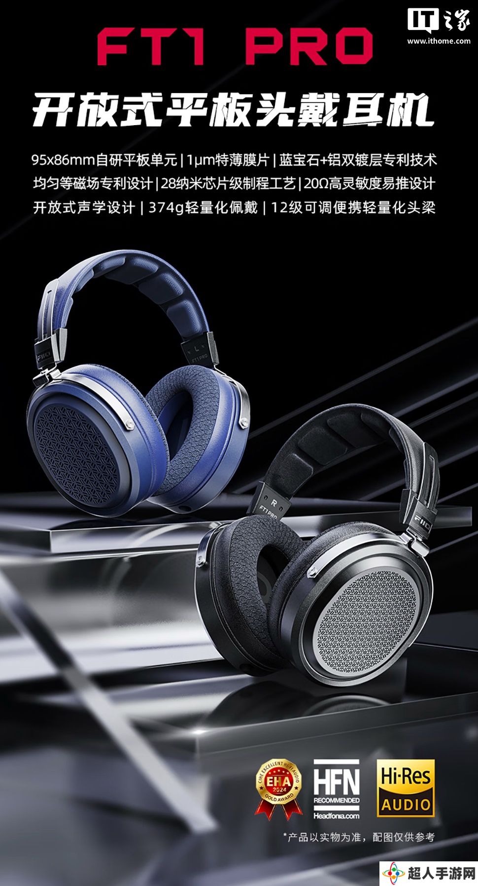 飞傲 FT1 Pro 开放式平板头戴耳机新增蓝色版:双 3.5mm TRS 接口、20Ω 低阻抗设计,1299 元