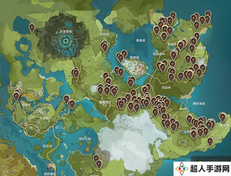 松果主要分布在蒙德地图。