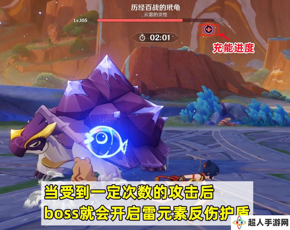 当它累积受到一定次数的攻击,满充能以后它就会开启雷元素的反伤护盾。