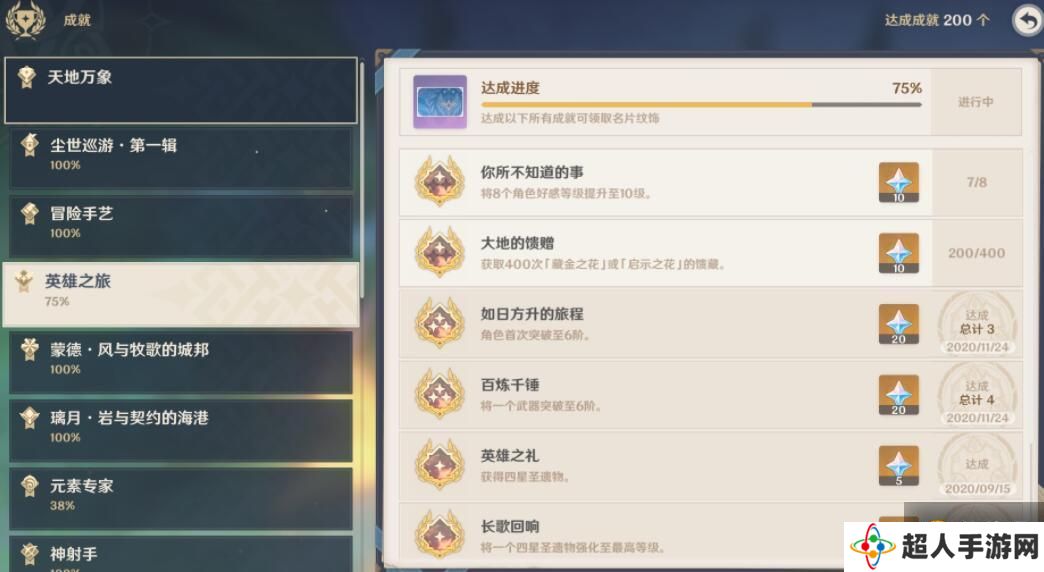 八个角色满好感度可以完成英雄之旅的一个一个成就哦。