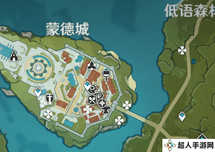 蒙德城的慕风蘑菇分布在我标注的风车和房区,蒲公英在城门口。低语森林的小灯草则是在草地分布。