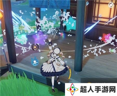 2、帮助小羽把霄灯挂到门上,然后接取任务,帮小羽收拾店里(使用风元素角色打扫地面灰尘)
