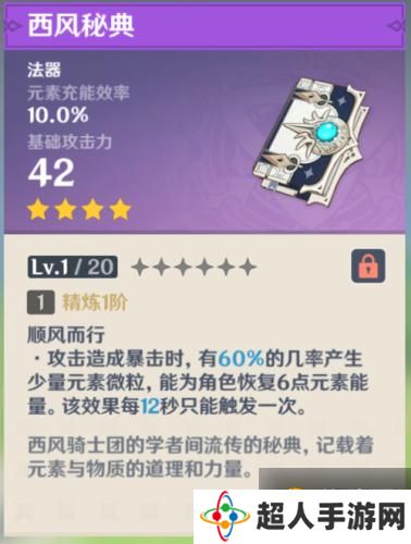 (2)西风剑琴:不重置e,但会额外掉落6点元素能量——即魈可获得额外6个元素能量。