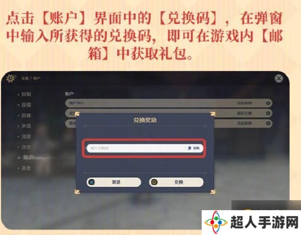 原神异世寻味礼兑换码的兑换方法是进入游戏后,点击头像打开菜单,然后点击齿轮图标打开设置页面,在设置页面中点击账户选项打开账户设置,在账户设置页面中选择兑换码选项打开兑换页面,在兑换页面页面中输入兑换码进行兑换后,奖励就会发送到玩家的邮箱中。