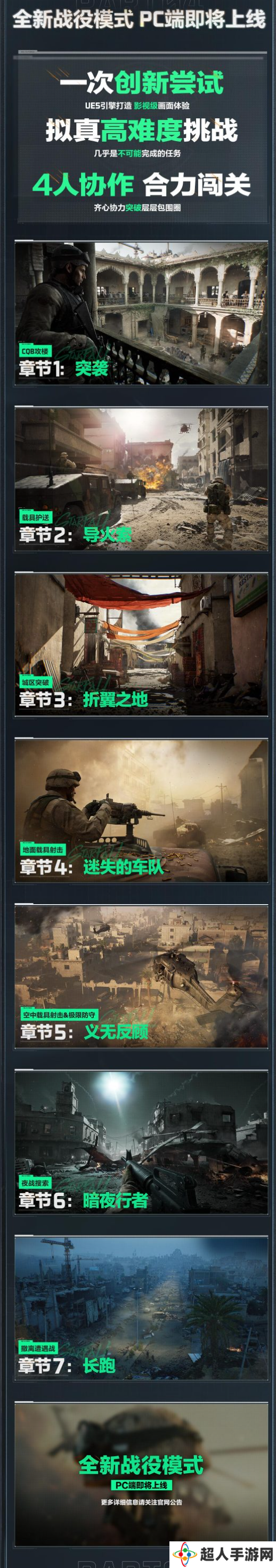 根据官方预告,黑影坠落战役模式包含下面几个章节: