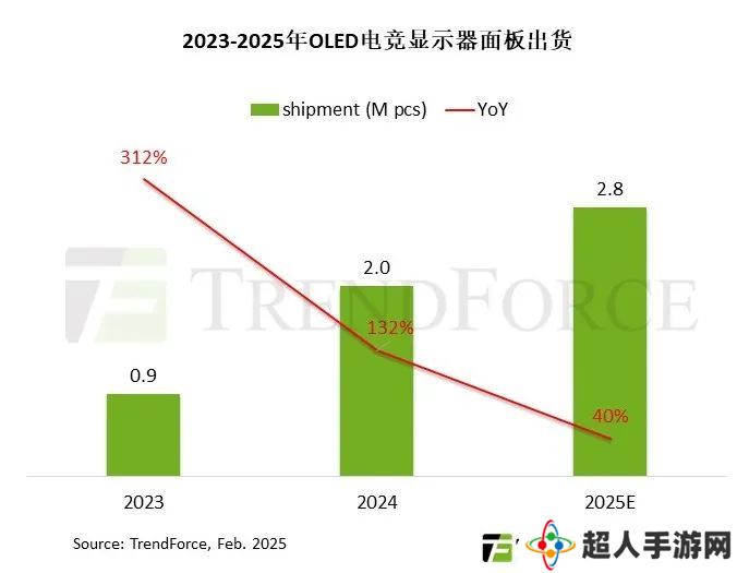 2025 年将有更多品牌投入资源开发 OLED 电竞显示器,然而,面板厂为维持 OLED 显示器的高阶定位并确保毛利,降价幅度将趋缓,预计今年 OLED 电竞显示器面板出货增幅下降至 40%,至此步入稳定成长阶段。