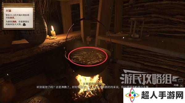 把锅放到火上煮沸后,立即翻转旁边的沙漏。沙漏中的沙子流尽一次,代表已熬煮一轮。