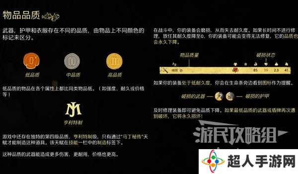 及时修理装备即可避免品质下降。如果最低品质的武器或盾牌再次遭到破坏,它将永久损坏。