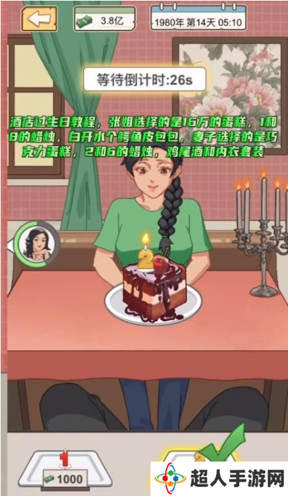 张姐选择的是16万的蛋糕,1和日的蜡烛,白开水个鳄鱼皮包包,妻子选择的是巧克力蛋糕,2和6的蜡烛,鸡尾酒和内衣套装。