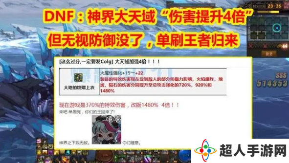 大天域更新带来的4倍伤害提升是一项令人兴奋的改动,让玩家的输出能力大幅度提升。如图所示,现在游戏是370%的特效伤害,改版1480% ,足足提升了 4倍!这意味着在面对强大的敌人和困难的副本时,玩家们能够更迅速地击败他们,对于喜欢单刷的玩家而言是个不错的选择。