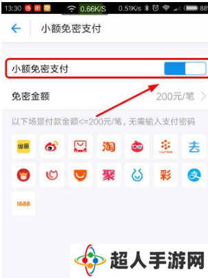4、验证之后进入免密支付设置界面,点击【小额免密支付】;