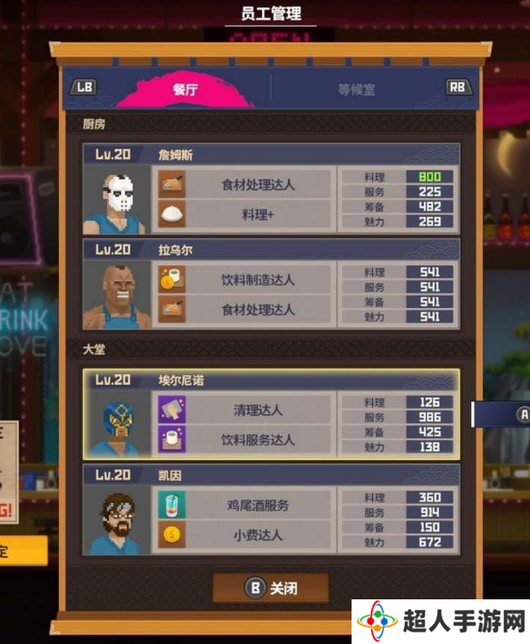 5、拉乌尔也是必备的厨师,因为有他饮料卖的更贵,其他的三个厨师靠料理值确定。