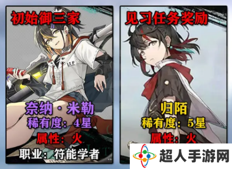 奈纳、归陌,御三家+见习任务奖励,依旧是每位玩家都能拿到的角色,火系有着对单优势,打Boss更省时,同样的,剩下的两个位置拿来补属性加成或保证生存;