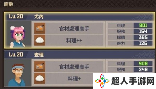简单来说,内场员工尽量挑选"料理"数值高的,外场挑选"服务"数值高的再来。
