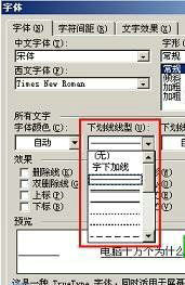 第二种方法:选中需要添加下划线的文字段落后,点击鼠标右键,弹出菜单中选择“字体(F)”,然后弹出窗口中间部位,找到“下划线类型”选项,将下划线设置为您需要的样式后,点击“确定”即可打出下划线;
