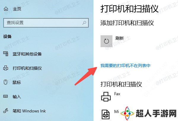 5、手动添加:如果没有找到,可以选择“我需要的打印机未列出”,然后根据提示输入打印机的名称或IP地址手动添加。