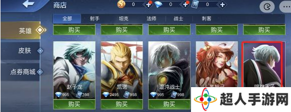 2.第二步:在英雄一览里面就可以找到【唱跳王子】也就是蔡徐坤的皮肤,点击进入就可以购买了;